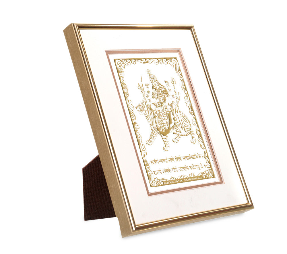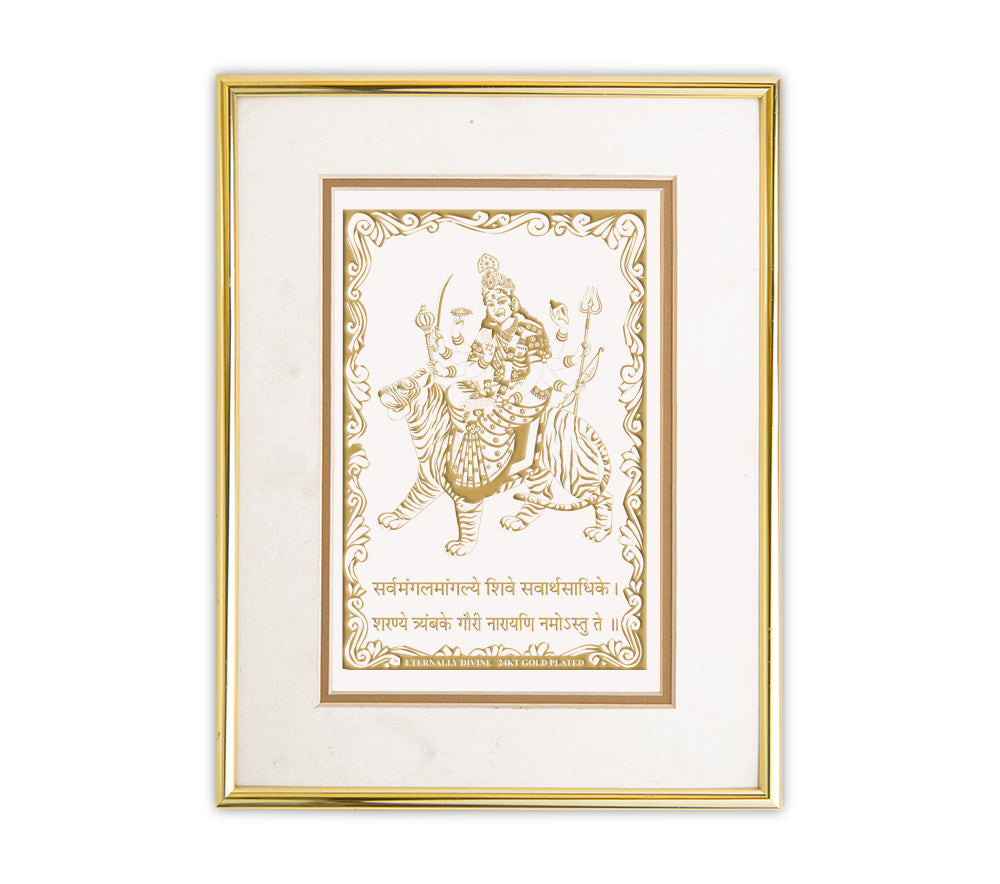 Sherawali framed in 24-carat gold detailing, embodying divine love and eternal companionship. Crafted as a graceful reminder of soulful connection.