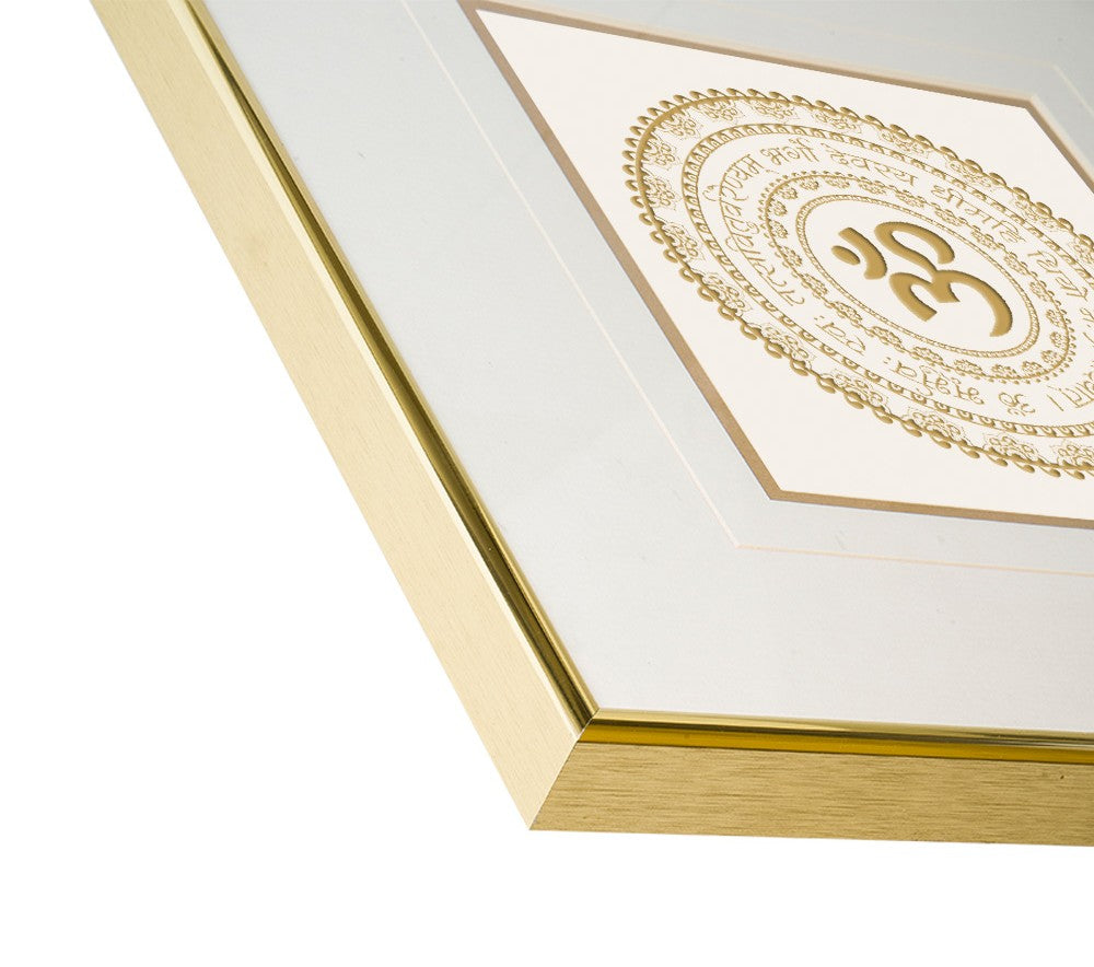 Ynatras & Gayatri Mantra framed in 24-carat gold detailing, embodying divine love and eternal companionship. Crafted as a graceful reminder of soulful connection.